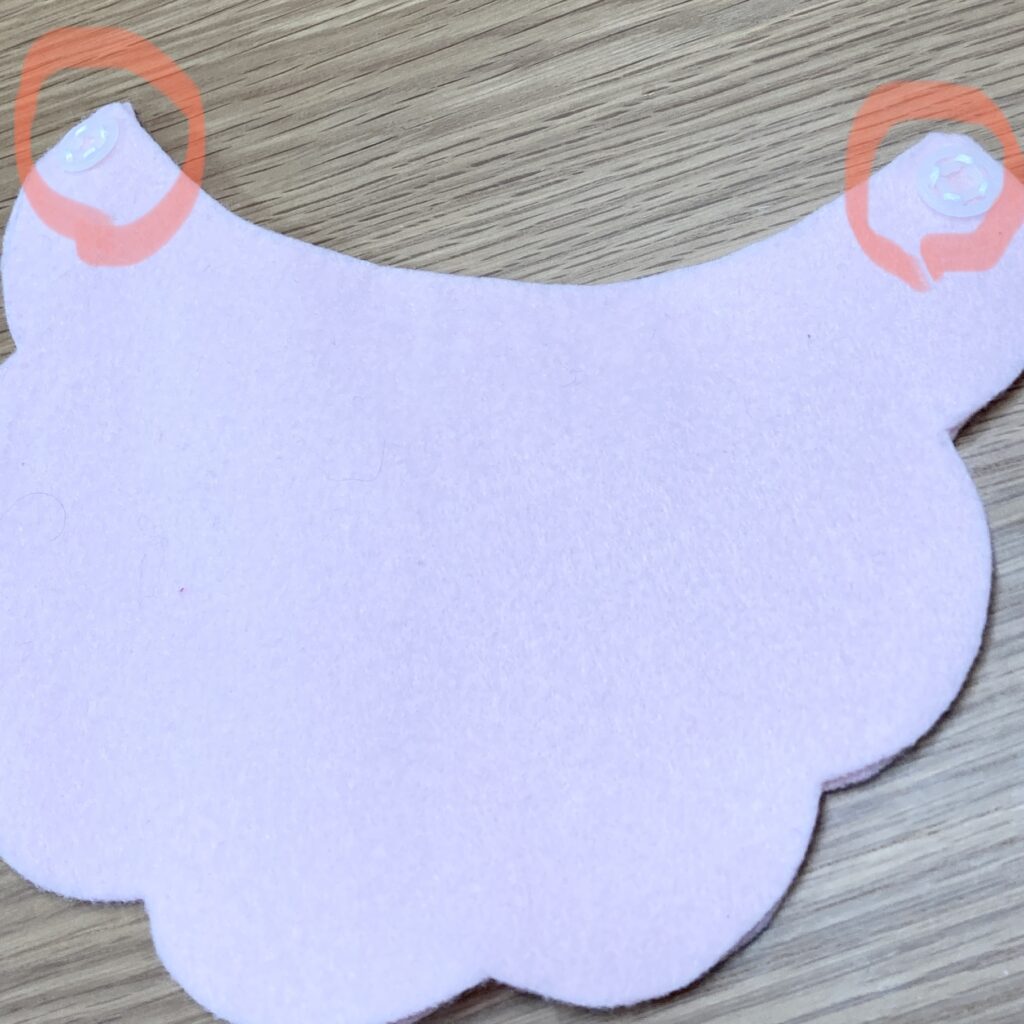 まずは、耳・フリル・よだれかけなどのパーツをフェルトで作ります。